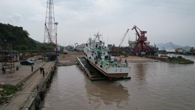 浙江华航实业“1000T移动船台装置”成功搭载公务船上排